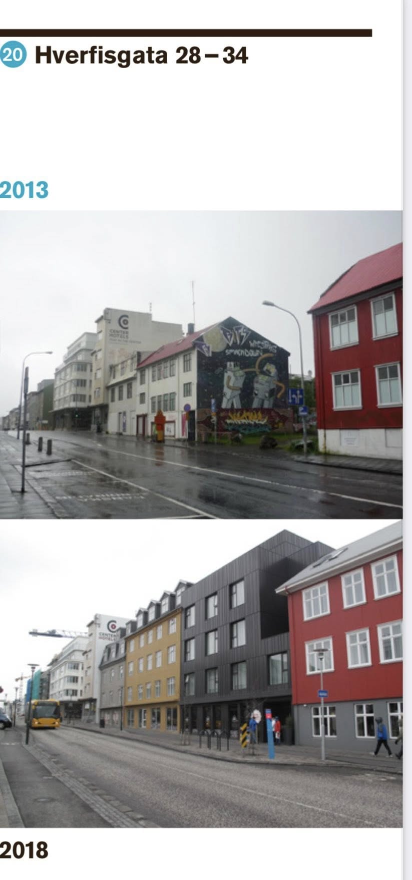 „Mín upplifun er sú að miðborgin hafi gengið í endurnýjun lífdaga, frá endurnýjun Hlemms i austri, til endurgerðar Hverfisgötu í norðri og byggingu Hörpu, Hafnartorgs og Austurhafnar, endurnýjun Kvosar og endurnýjun Vesturbugtar og Granda til vesturs. Illa farin hús hafa verið gerð upp í stórum stíl, byggt í skörðin og svæðin milli húsanna hafa mörg verið fegruð. Blómin og gróðurinn um allt er svo kapituli út af fyrir sig. Mannlífið og menningin hefur aldrei verið meiri.“