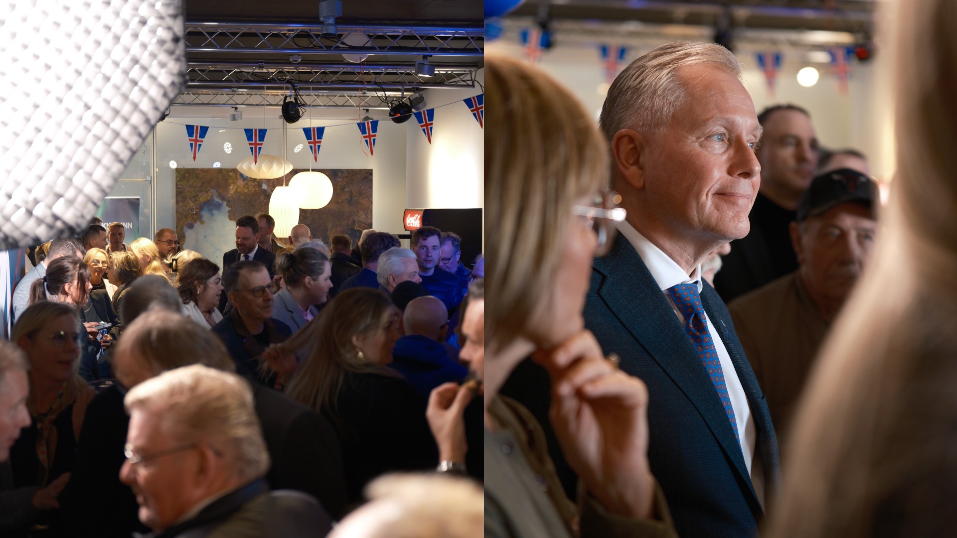 Troðfyllt var út úr dyrum og glatt á hjalla er Miðflokkurinn í Reykjavík opnaði kosningaskrifstofu sína í Austurveri í gær.